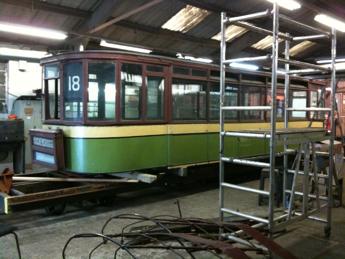 487 - The lower deck temporarily stored in the paint shop at Boston Lodge. Picture by Glenn Williams.