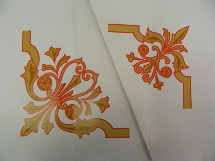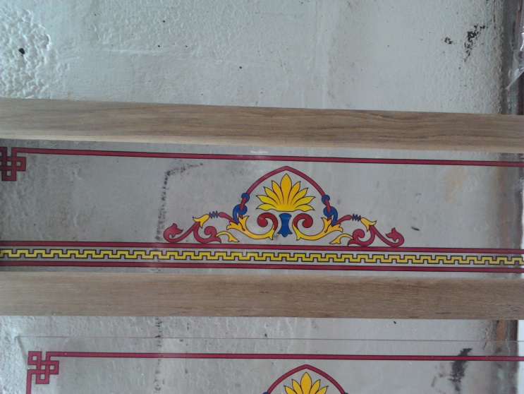 • Three middle ceiling panels cut, part varnished and ready for artwork.