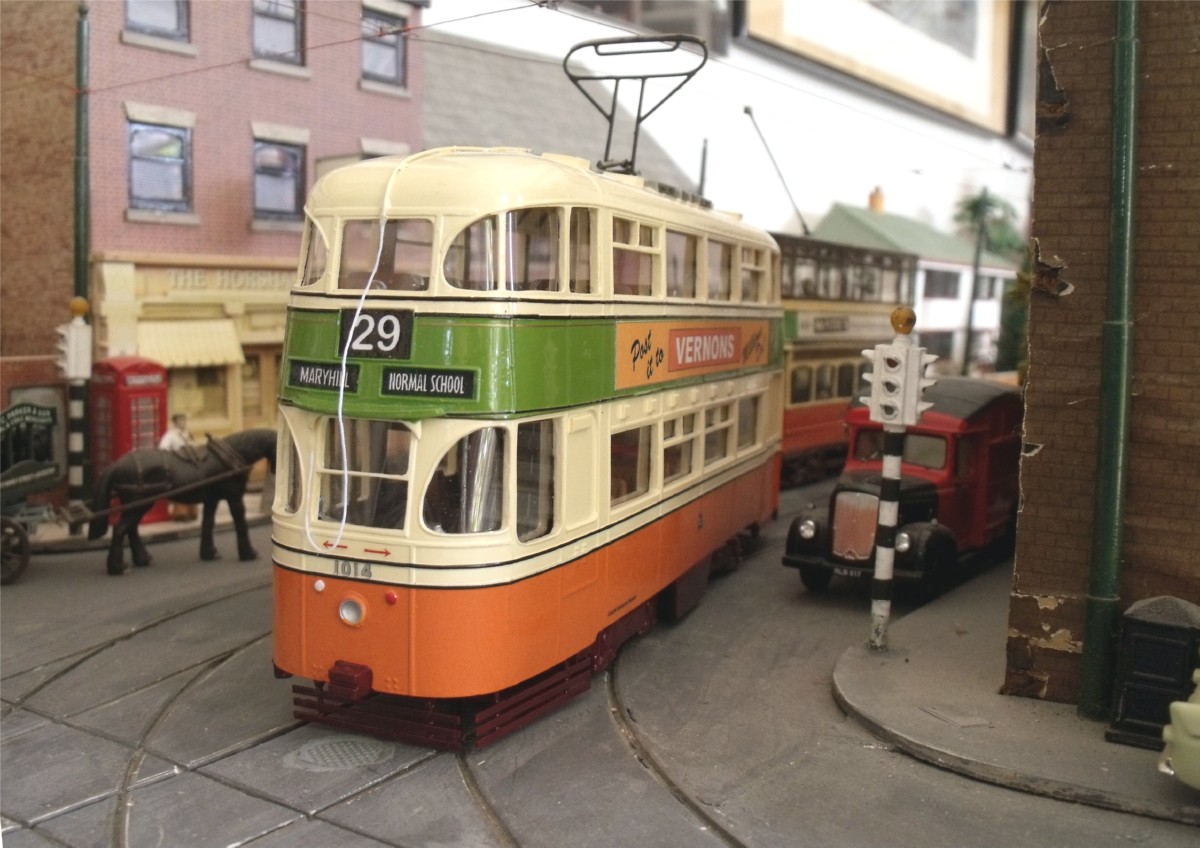 add grain of wheat lighting, fit Terry Russell EMB lightweight trucks and working bow collector and out rolled a tram #1173 in a livery