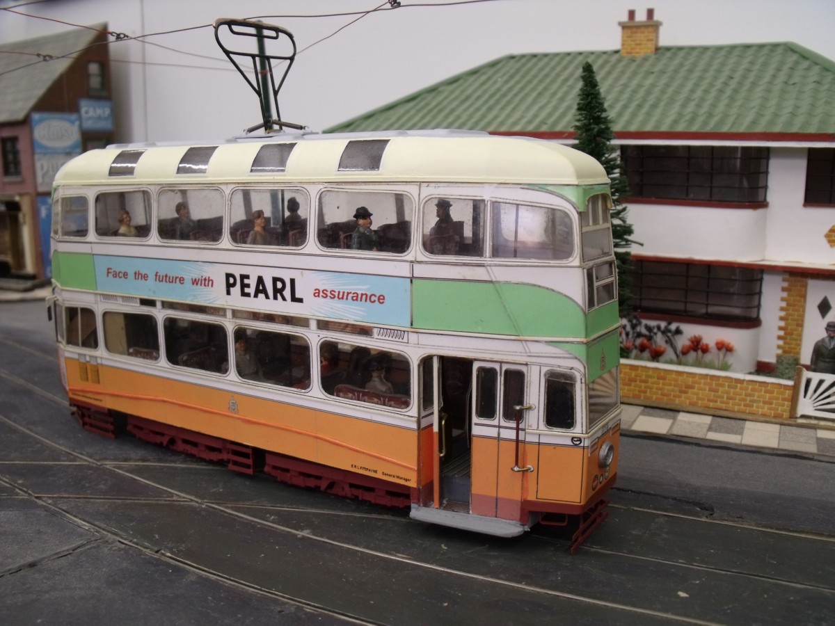 7mm Glasgow Tram Model - Ex-works Take a £10 Alphagraphic card kit, strengthen it with white card and glazing and populate it with 'Slater' figures,